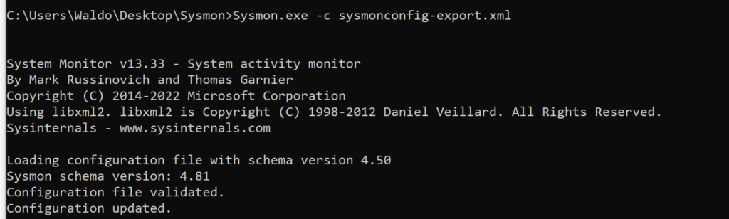 .\sysmon.exe -c sysmonconfig-export.xml