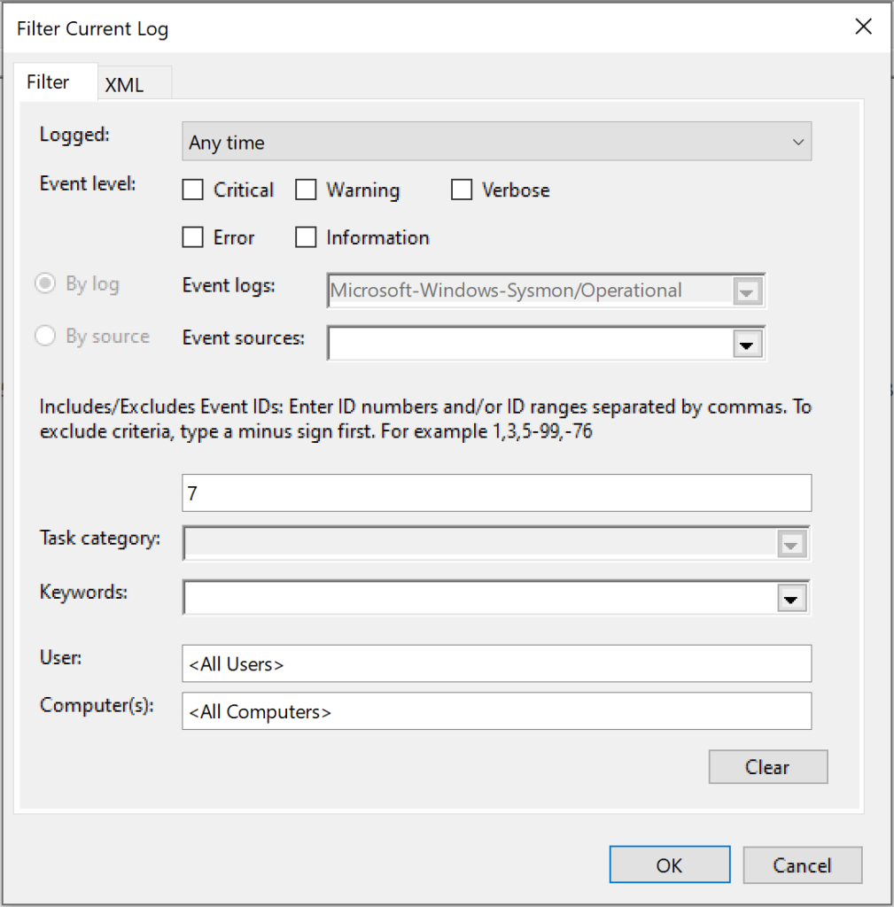 I downloaded the SwiftOnSecurity sysmonconfig-export.xml as a starting point and loaded it into Sysmon so we’d collect module load events.