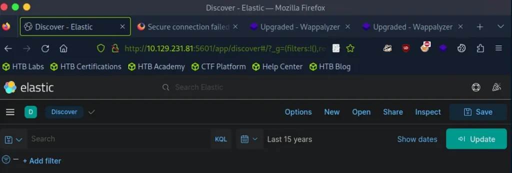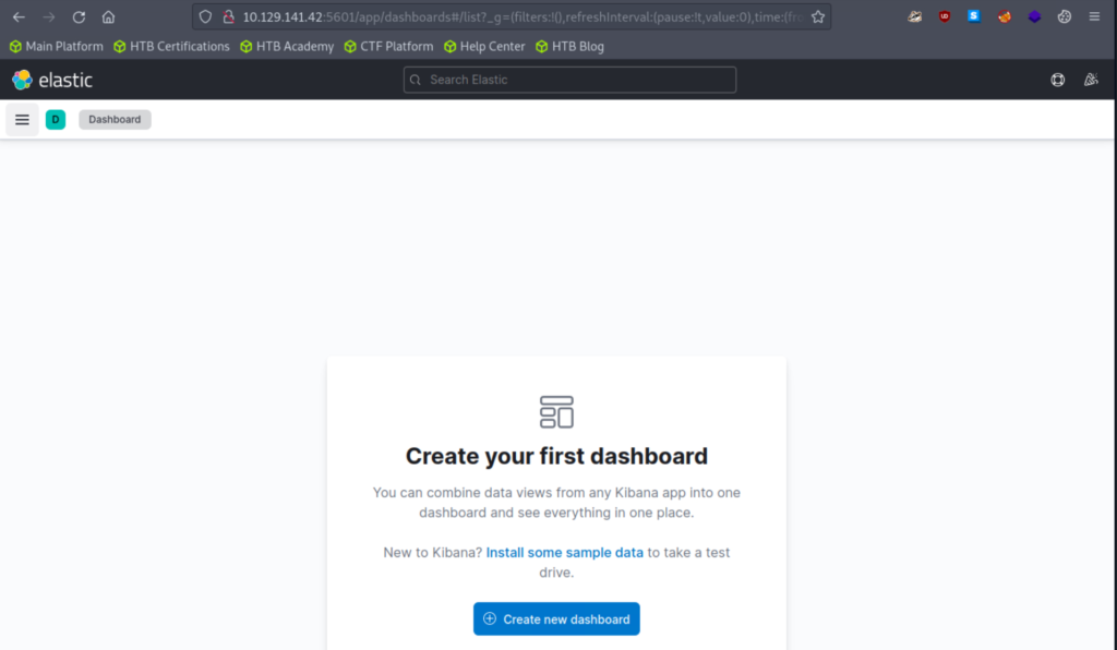 After spawning the target system, I navigated to Kibana at http://[Target IP]:5601. The first step was to remove the pre-configured SOC-Alerts dashboard so I could start fresh.