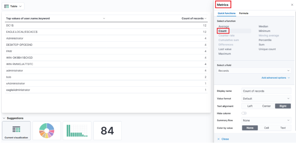 user.name.keyword→ Displayed as Usernamehost.hostname.keyword→ Displayed as Event logged by